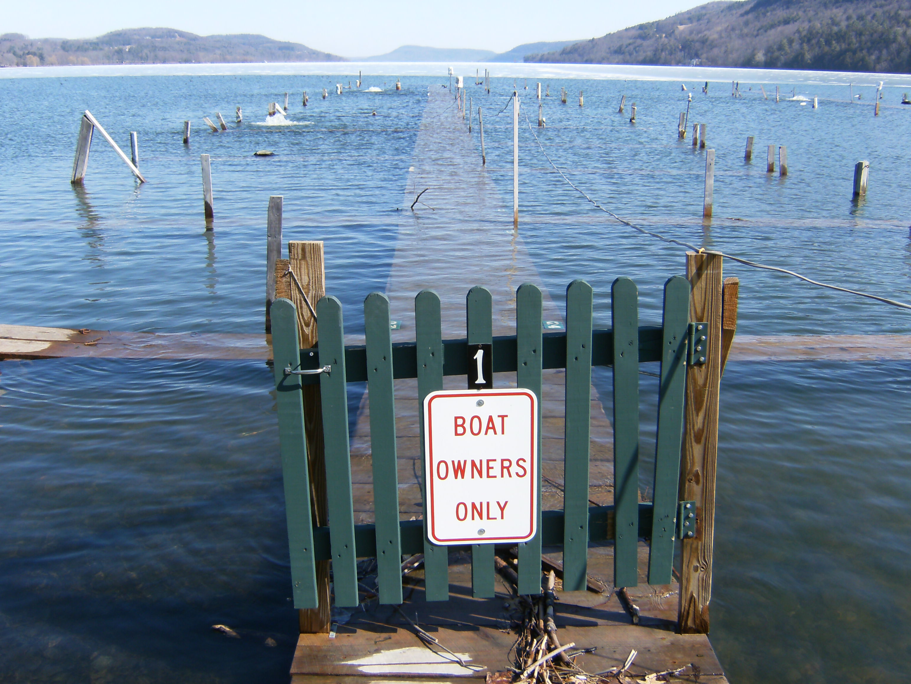 A submerged dock on Lake Otsego