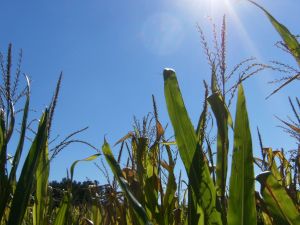 and then how the sun filters down through the corn stalks, illuminating some