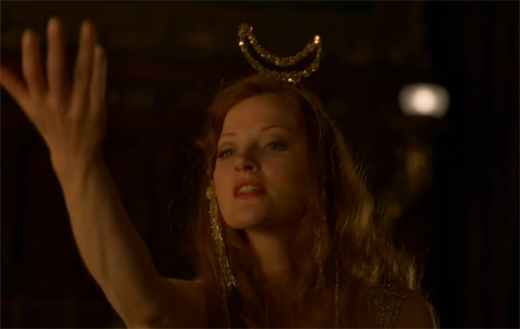The Spin: Kornacki crafts a compelling hour built upon the themes of disillusionment and being put back in one’s place. The show opens with the Commodore (Dabney Coleman) suffering a stroke at the height of lechery, leaving Gillian (Gretchen Mol), Jimmy (Michael Pitt) and Nucky’s idiot brother wondering what the heck to do now. Meanwhile, Margaret gets disillusioned by Nucky’s cheerfully amoral politicking (“It’s about happiness” he tells her after deliberately publicizing a scandal with whores and votes so that he might get charged by the feds and then let off the hook by his old pal, the Attorney General) as well as by the attitudes of her servants. Heck, ain’t nuthin’ a little cash stashin’ can’t fix, eh, old gal? Meanwhile, it was a real treat to see Luciano put in his place by Rothstein (Michael Stuhlbarg), the professional businessman to Nucky’s professional showman. And then we had ol’ Chalky White (Michael K. Williams) getting pressure from the widows of those who were killed by the KKK only to have Nucky tell him to be a “good boy” and wait for justice to be dispensed (again, we see Nucky promise to solve everything – with money). Oh, that don’t sit well with Chalky, and he takes it out on his civilized family at the dinner table. Lastly, Harrow (Jack Huston) provides Angela (Aleksa Palladino) with some much-needed artistic inspiration, leaving poor Jimmy to wonder if he’ll ever really understand any of the people he loves. Things come full circle in the final scene where Gillian, disillusioned by having to play nursemaid to the Commodore, reveals in a fit of angry tears and powerful slaps, that she’s been giving a grand performance all along.