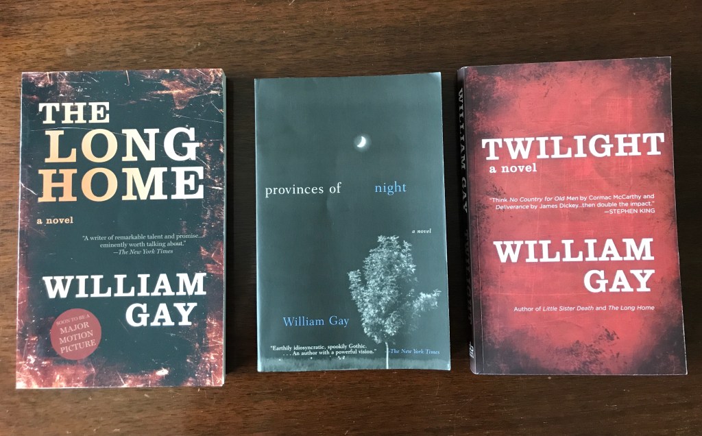 I don’t remember exactly when William Gay came to my attention. I think his works started showing up in my Goodreads recommendations based on my predilection for William Faulkner, Flannery O’Connor, and Ron Rash. In the past 18 months I’ve read his big three novels: The Long Home, Provinces of Night, and Twilight…and the latter two are bona fide masterpieces I will never forget. Last summer, the snowstorm sequence in Provinces of Night was so vividly depicted I found myself shivering in a heat wave. Twilight has a Shining-esque snow squall hang over its latter section as well, equally indelible in the mind. Both novels are powerfully poetic, with Provinces of Night being more elegiac (and seemingly genteel compared to its brethren) while Twilight presents a propulsive forward momentum…both novels mucky and stuck up in the pain, sorrows, triumphs and new beginnings forever cycling and intertwined in the make up of a man.