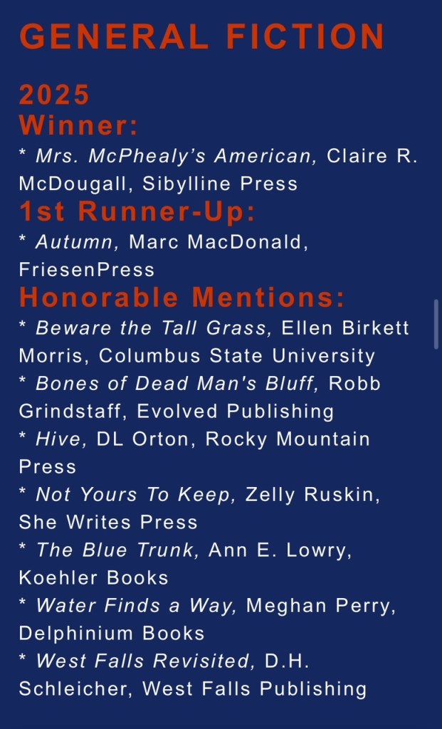 Later it was awarded Honorable Mention in the General Fiction Category.